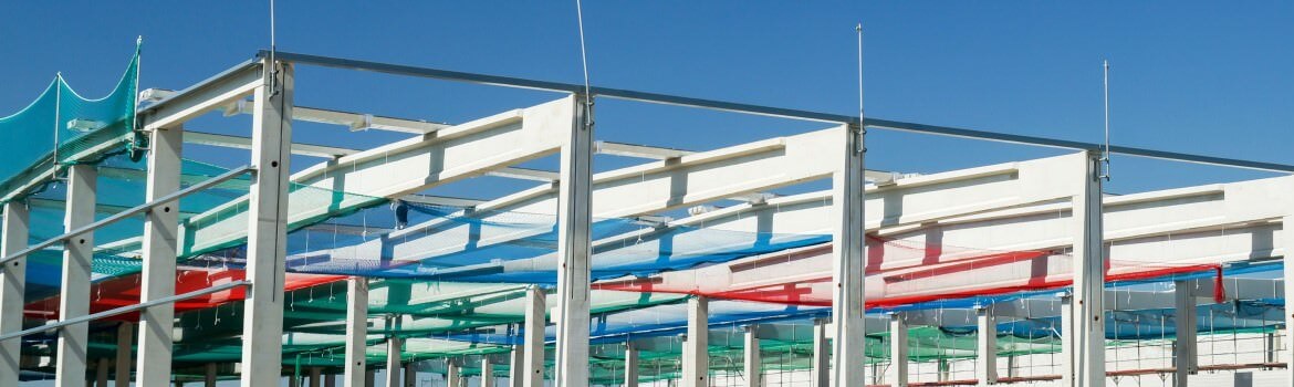 We offer safety and guard nets for every requirement. In the area of building-site nets, we offer fall safety nets as well as scaffolding nets for side-mounted protection. The fall safety and guardrail nets are European Standard-certified and conform to the current German Employers' Liability Insurance Association for the Building Trade (Bau-BG) regulation no. 179. We also offer guard nets for industrial uses. Pallet rack safety nets ensure that goods are safely stored on high racks and that personnel are protected from falling goods. Again, on the sport field, our nets installed along the edge of the playing field protect spectators from stray balls. Whether football or golf ball, the right ball net prevents injury and lost balls. Our nets can also be used in very versatile ways in the house and garden. In the living area, for example, they create a safe playing area for your children on the loft bed or balcony. In the garden, leaf nets prevent pools and ponds from being contaminated by falling leaves. Screen nets on balconies or terraces block the view of inquisitive neighbours and provide shade on hot summer days. So safety and guard nets can be deployed in many different ways. Visit our shop to find the perfect net for your requirements!
