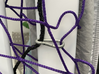 The carabiners in combination with the stainless steel brackets that are attached to the wall/ceiling and the loft bed net made it easy to install the fall protection on the loft bed.