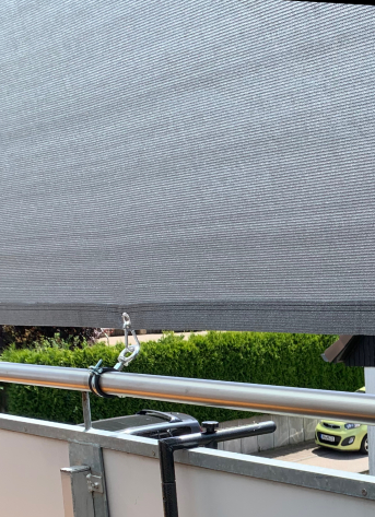 We have been looking for a way to provide optimal sun protection for our terrace for a long time. We have finally found one at Safetynet365. We were able to implement our idea brilliantly with Safetynet365 and are very happy with the result. Our neighbors think so too. With the help of the fastening line, the snap hooks and the tensioning loops (all from Safetynet365), the three net strips (we determined the dimensions ourselves) can now be hooked up individually. It basically works like a sun blind. The protective nets also offer privacy and our furniture is protected when it rains. We attached the privacy strips to a two-meter-long curtain rod at the top with curtain rings (but this was from the hardware store). All in all, we have found an inexpensive solution, without drilling or any major effort. Thanks to all the other buyers with their photos, which inspired us for our solution. Thanks to Safetynet365 for the quick processing and for the personal and great service. translated, original text: "Wir haben lange nach einer Möglichkeit für einen optimalen Sonnenschutz für unsere Terrasse gesucht. Bei Schutznetze 24 sind wir endlich fündig geworden. Wir konnten mit Schutznetze 24 unsere Idee super umsetzen und sind sehr zufrieden mit dem Ergebnis. Das finden auch unsere Nachbarn. Mit Hilfe der Befestigungsleine, der Karabinerhaken und der Spannschlaufen (alles von Schutznetze 24) können nun die drei Netzstreifen (die Maße haben wir selbst festgelegt) individuell hochgehakt werden. Es funktioniert quasi wie ein Sonnenrollo. Zudem bieten die Schutznetze einen Sichtschutz und bei Regen bleibt unser Mobiliar geschützt. Befestigt haben wir die Sichtschutzstreifen oben mit Vorhangringen an einer zwei Meter langen Vorhangstange (dies allerdings vom Baumarkt). Alles in allem haben wir eine günstige Lösung gefunden, ohne Bohren oder größerem Aufwand. Danke an alle anderen Käufer mit ihren Fotos, die uns für unsere Lösung inspiriert haben. Danke an Schutznetze 24 für die schnelle Bearbeitung und für den persönlichen und tollen Service."