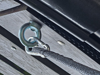 The carabiners serve as additional protection for fastening. translated, original text: "Die Karabiner dienen nochmal als zusätzlicher Schutz zur Befestigung."
