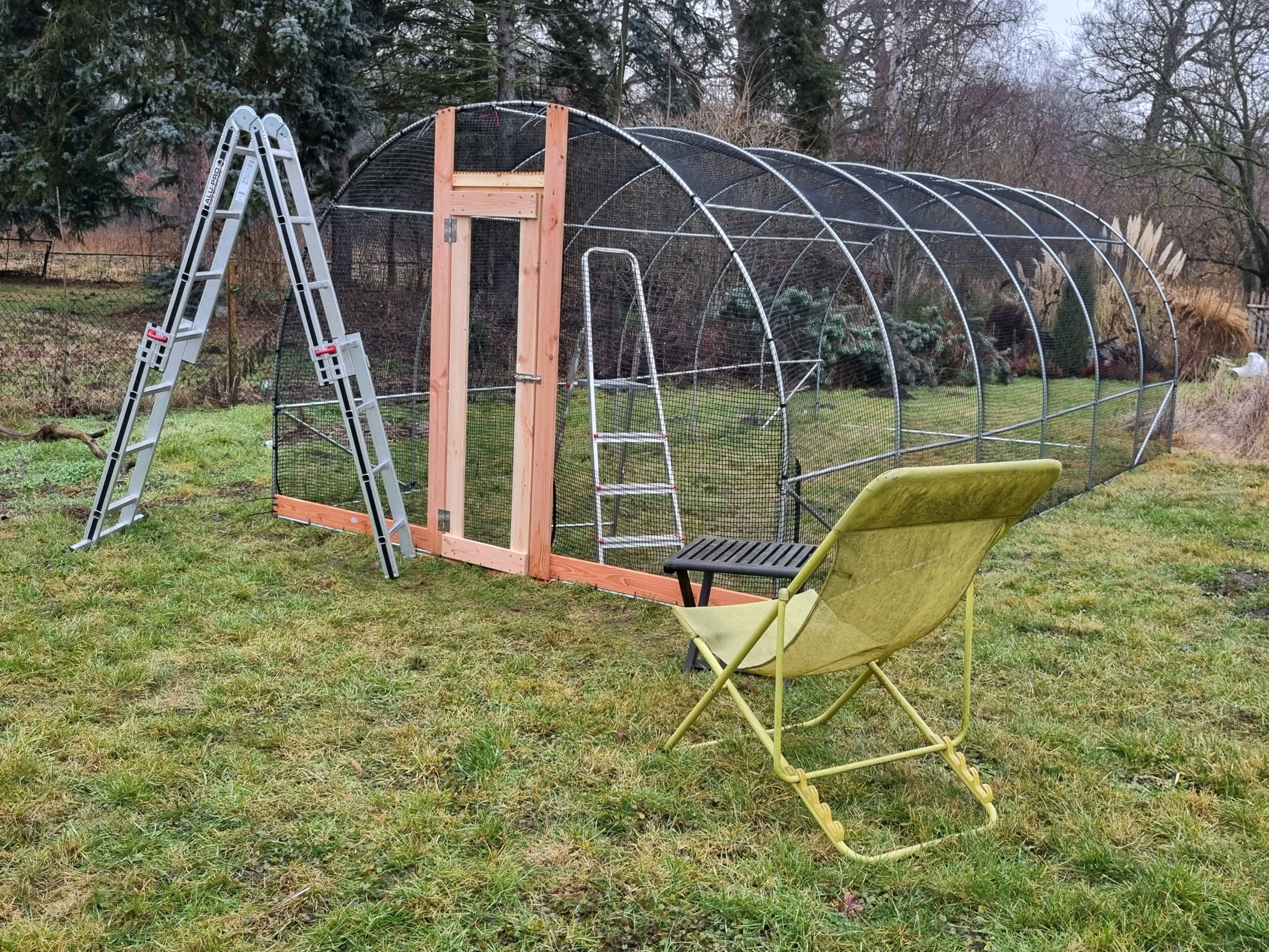 It was easy to install. Chickens are protected from birds of prey. Looks very sturdy. translated, original text: "Hat sich gut verbauen lassen. Hühner sind von Greifvögel geschützt. Schaut sehr stabil aus"