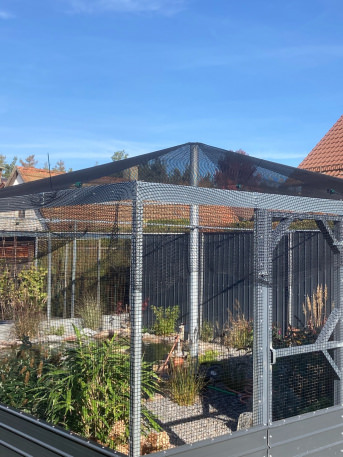 Let's see when the next animal enclosure arrives - I would definitely order again :) translated, original text: "Ich verwende mein Schutznetz als Wildvogelschutz über dem Auslauf meiner Hühner. Das Netz ist sehr stabil und ließ sich wunderbar straff spannen auch nach einigem Regen und Wind ist es noch immer straff und hängt nicht durch. Nachdem ich von dem Netz für die Hühner so begeistert war, habe ich auch gleich noch eins für den Entenauslauf bestellt.