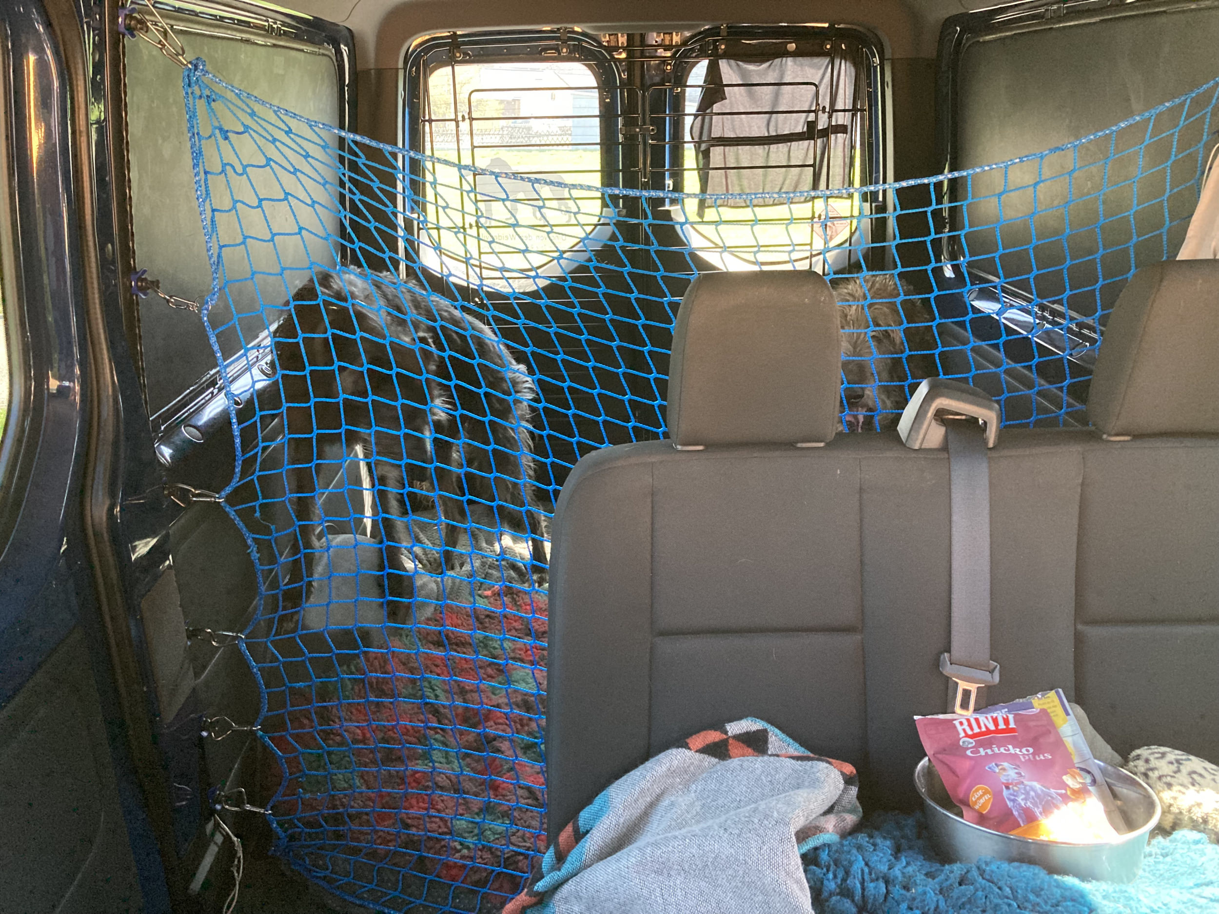 Load securing net installed in a caddy. translated, original text: "Ladungssicherungsnetz in einen Caddy eingebaut."