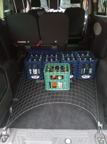 Load securing net installed in a caddy. translated, original text: "Ladungssicherungsnetz in einen Caddy eingebaut."