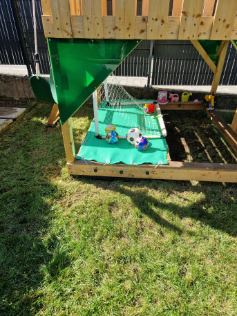 We are very enthusiastic about the safety net. The sandpit is well protected and looks good too. The grandchildren are happy, as are mum and dad, grandpa and grandma. We think it is a very good product that fits perfectly. We are now just waiting for better weather. translated, original text: "Wir sind sehr begeistert von dem Schutznetz. Der Sandkasten ist gut geschützt und sieht auch noch gut aus dabei. Die Enkelkinder freuen sich, Vater und Mutter, Opa und Oma. Wir finden es sehr gutes Produkt was prima passt. Wir jetzt nur noch auf besseres Wetter."