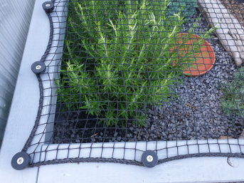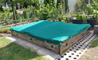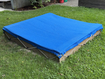 In combination with the net and the rubber cord, we have a perfect sandpit cover.