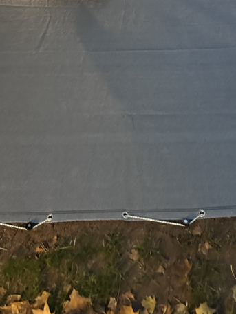 With this system, the children can cover and re-cover the sandpit themselves. Even though it is 4.5x5m in size. translated, original text: "Die PE knöpfe sind einfach Hammer.
