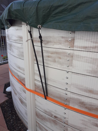 We ordered the tensioning belt for our steel wall pool in exactly the right length. The tensioning belt now stretches around the pool. Expanders are now attached to this tensioning belt to ensure that the pool cover is securely fastened even in storms. I think it's great that you can choose the length yourself. There are hardly any tensioning belts that long on the market, and since our pool is 7.30m x 3.60m, we needed a very long tensioning belt. translated, original text: "Wir haben den Spanngurt um unseren Stahlwandpool mit genau der richtigen länge bestellt. Der Spanngurt spannt nun rund um den Pool. An diesem Spanngurt sind nun Expander angebracht um die Abdeckfolie des Pool auch bei Stürmen gut zu befestigen. Ich finde es prima, dass man hier die Länge selbst bestimmen konnte. So lange Spanngurte gibt es im Handel kaum da unser Pool 7,30m x 3,60m ist brauchten wir einen sehr langen Spanngurt."