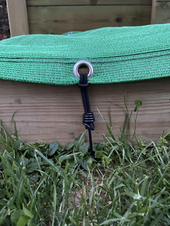 The tensioning straps are the perfect solution for securing our sandbox cover.