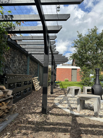 We have built a pergola. We want to plant plants on it. The nets are there to ensure that the plants are well supported. We are very satisfied so far. translated, original text: "Wir haben uns eine Pergola gebaut. Diese soll begrünt werden. Die Netze dienen dazu, damit die Pflanzen einen guten Hält haben. Bis jetzt sind wir sehr zufrieden."