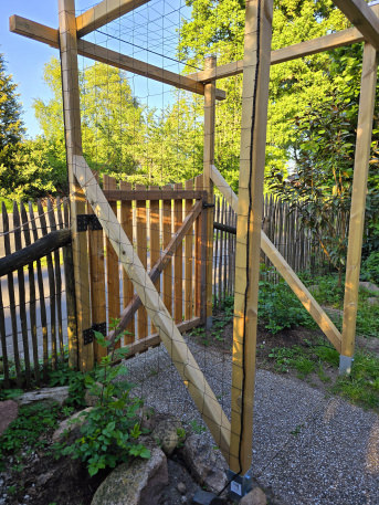 The net was ordered quickly and delivered just as quickly. The ordered dimensions were adhered to exactly. The roses and I are very satisfied. translated, original text: "Ich hab mir ein neues Gartentor gebaut und rechts und links jeweils eine Kletterrose gepflanzt.
