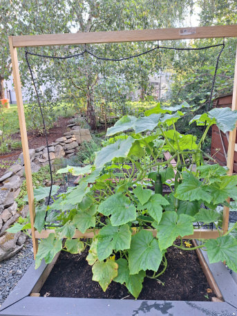The trellis does what it's supposed to: it helps the cucumber to climb. Very simple. Stable and easy to attach. translated, original text: "Die Rankhilfe tut was sie soll: sie hilft der Gurke beim Ranken. Ganz einfaches Teil. Stabil und einfach anzubringen."