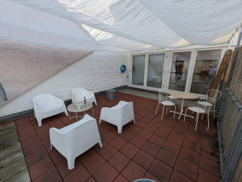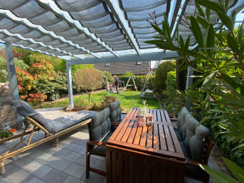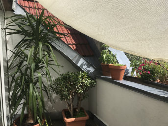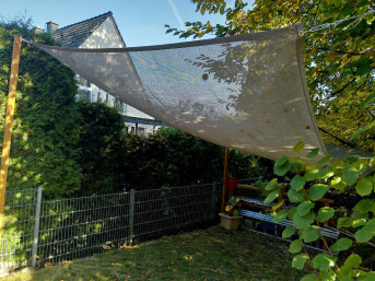 The shade net serves as sun protection on our garden terrace. It is attached in a movable manner so that, for example, in spring the sun can shine unhindered onto the terrace.