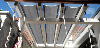 Since our homemade sun protection system had finally fallen apart after 15 years, we were looking for a similar alternative.