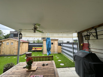 So I quickly chose the shade net. It also keeps the rain out well and dries quickly afterwards! It is also a visual eye-catcher.