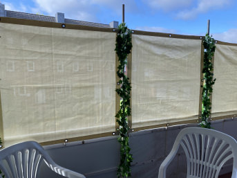 I stretched the privacy net at a height of 1.80m between 2 metal posts using simple cable ties. My neighbors and I can now sit relaxed on our terraces without having to make permanent eye contact. Privacy is also a quality of life.