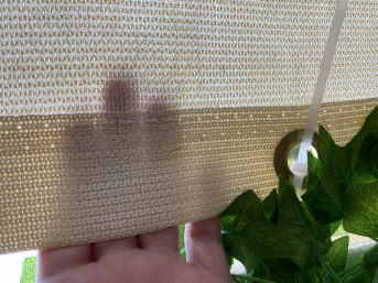 I'm extremely satisfied with the privacy screen I bought a few years ago for our south-facing terrace/balcony. It was delivered on time and with exactly the dimensions I ordered. The edges and corners are neatly finished, and everything still looks unchanged today?no fraying, no fading, or any other discoloration! I find the 90% shade ratio ideal; it provides privacy while still allowing shapes to be seen.