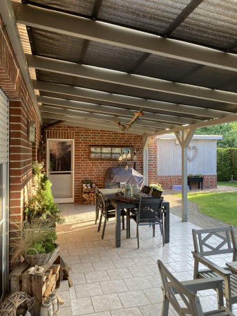 Auf der Terrasse ist es endlich schön schattig und trotzdem nicht zu dunkel,auch in unsere Küche die an der Terrasse grenzt ist es jetzt viel kühler und trotzdem noch immer schön hel.