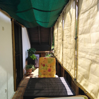 Since I only have a small loggia and had to secure it with a cat net, I needed a practical solution for sun protection.