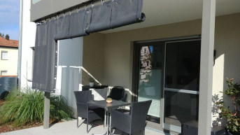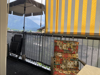 Stretched in front of the patio door, it serves as sun protection with two overlapping strips of 3.5m x 0.45m.
