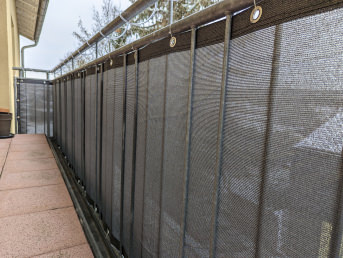 I ordered and installed the privacy screens in the color anthracite, firstly as a privacy screen for my "very transparent or open" balcony railing and secondly as a "movable" sun protection (running between two stretched stainless steel cables).