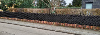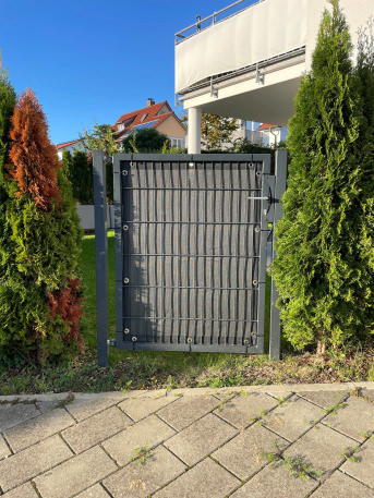 We had the privacy screen made in two equally sized elements so that we could cover up our neighbor's unsightly wooden fence. We also wanted a solution that we could quickly remove if necessary, but also put back in place just as quickly. The elements absolutely meet our expectations. Great quality, very well made and delivered in a good time. We immediately ordered another element and will expand the privacy screen. translated, original text: "Wir haben das Sichtschutzelement in zwei gleich große Elemente herstellen lassen, um einen unansehnlichen Holzzaun des Nachbarn verdecken zu können. Zudem wollten wir eine Lösung, die wir bei Bedarf schnell wieder entfernen, aber auch ebenso schnell wieder anbringen können. Die Elemente erfüllen absolut unsere Erwartungen. Eine tolle Qualität, sehr gut verarbeitet und in einer guten Zeit geliefert. Wir haben direkt noch ein weiteres Element bestellt und werden den Sichtschutz erweitern."