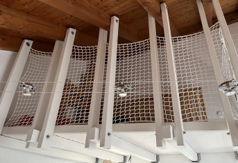 The material is of course 100% non-toxic, and contact with mucus membranes (mouth, eyes) is completely safe as well. Thanks to their weather-resistance and UV-stability, our safety nets are suitable for both outdoor and indoor use.