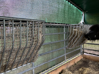 Our sturdy hay racks had large gaps between the bars. They ate too quickly and a lot of hay fell on the floor. But we wanted to keep the large filling opening. That's where the custom-made hay nets came in handy. The inside dimensions of the rack became the outside dimensions of the hay net. The "misuse" works perfectly! translated, original text: "Unsere stabilen Heuraufen hatten große Gittersabstände. Es wurde zu schnell gefressen und es fiel viel Heu auf den Boden. Die große Einfüllöffnung wollten wir aber gerne erhalten. Da kamen uns die Heunetze nach Maß gerade recht. Die Innenmaße der Raufe wurden die Außenmaße des Heunetzes. Die "Zweckentfremdung" funktioniert tadellos!"