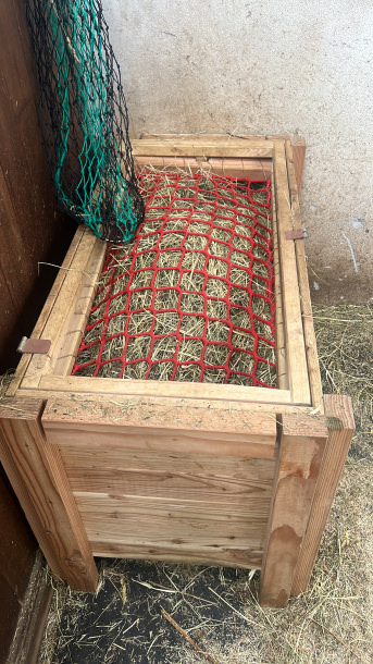 The nets for the hay racks are super translated, original text: "Die Netze für den Heuraufen sind Super"