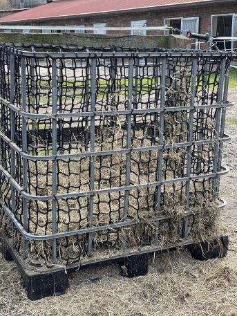This means we lose significantly less hay and the horses have something to do for several hours and enough hay for the whole day!