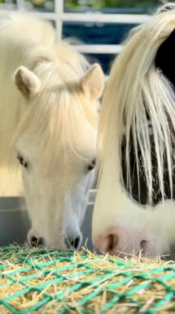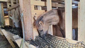 The horses eat from them 24 hours a day without getting too fat, but the nets are naturally extremely worn because they are constantly being nibbled and pulled at. The nets have now been in use for over a year and are holding up very well.