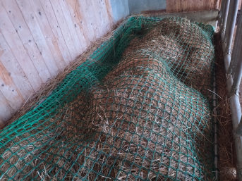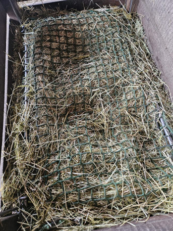 The net is ideal for covering the hay in the hay rack! translated, original text: "Das Netz eignet sich hervorragend zum Abdecken des Heus in der Heuraufe!"