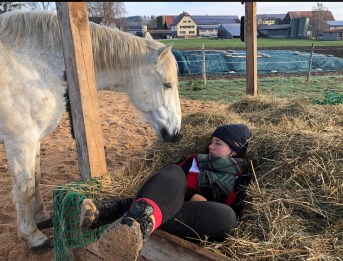 Great - keep it up translated, original text: "Wir benutzen 2 alte Badewannen als Heuraufen, die Netze sind mit Gummizug um den Wannenrand und zusätzlichen Karabinerhaken oben auf den Wannen montiert. Dadurch fressen die Pferde das Raufutter langsamer und es wird nur wenig Futter aus den Wannen geworfen und zertreten.