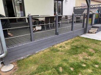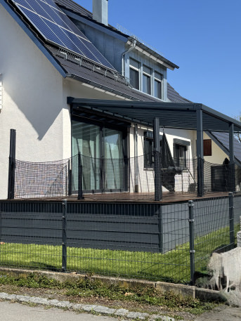 We fenced our patio with it and are very happy with it. We absolutely recommend it. translated, original text: "Wir haben damit unsere Terrasse eingezäunt, sind sehr zufrieden damit. Absolute Kaufempfehlung von unserer Seite"
