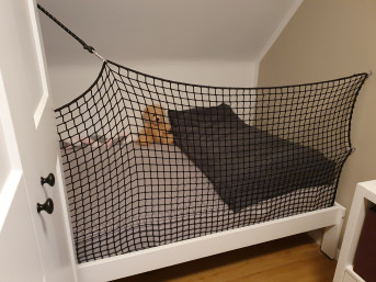 We had a net made for the bed in the alcove to prevent people from falling out and we are delighted. Finally the full width is covered. The quality is great. Delivery was super fast despite being made to measure. Arrived on time for the holiday. Full purchase recommendation translated, original text: "Wir haben uns ein Netzt für das Bett im Alkhoven als Rausfallschutz anfertigen lassen und sind begeistert. Endlich die volle Breite bedeckt. Die Qualität ist super. Lieferung trotz Maßanfertigung super schnell. Kam pünktlich zum Urlaub. Volle Kaufempfehlung"