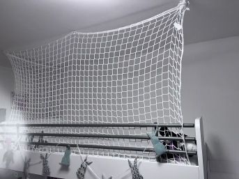 Loft beds: an absolute dream for children, sometimes a little worrying for parents. A net on the loft bed provides the necessary safety both during sleep and play and quickly makes you forget the worries. The safety nets are manufactured according to your individual specifications, ensuring a perfect fit on the loft bed or bunk bed. The extremely tear-resistant and stable yarn withstands even the strongest loads and reliably catches falls. With a reliable fall-out protection, you can enjoy all the benefits of space-saving and exciting loft beds without having to compromise on safety.