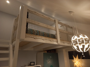 For our gallery in the basement, we needed a safety net tailored to our agile one-year-old daughter. The quality of the safety net is great and the size we ordered was exactly right. We decided to attach the net using fender eyelets, especially since the net could be tensioned accordingly. We will later use the net for the loft bed, so the purchase was doubly worthwhile. translated, original text: "Für unsere Galerie in den Souterrain benötigten wir ein zugeschneidertes Maß eines Sicherheitsnetzes für unsere einjährige agile Tochter. Die Qualität des Schutznetzes ist super und die bestellte Größe stimmte exakt. Wir entschieden uns für das Anbringen des Netztes mit Hilfe von Fenderösen, zumal das Netz entsprechend gespannt werden konnte. Später werden wir das Netz für das Hochbett verwenden, so dass sich der Kauf doppelt gelohnt hat,"