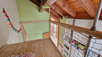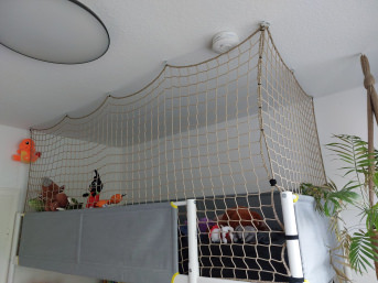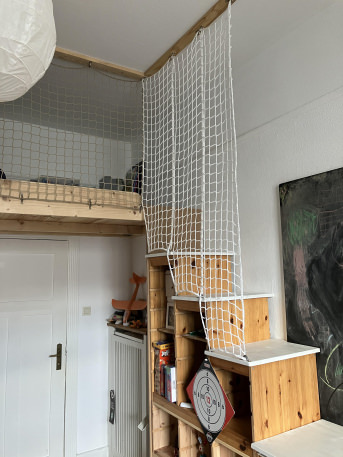 With these safety nets we have the perfect solution. Our son also got a small platform - for reading and as a storage space. We secured the whole area with two nets.