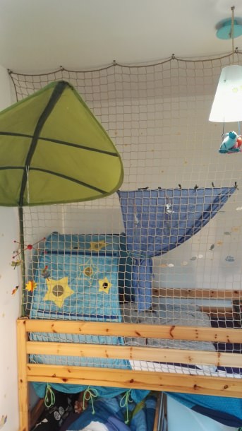 I'm completely satisfied and will definitely order the next net from here again. translated, original text: "Ich hab das Netz an dem Hochbett meines Sohnes angebracht. Motto Pirat.