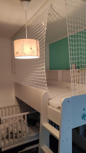 really a great solution for our loft bed. Clear recommendation translated, original text: "Wir lieben diese zwei Netze, unsere Kinder haben ein Hochbett bekommen und sofort begonnen im Bett zu springen. Das ging für mich gar nicht.