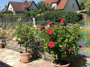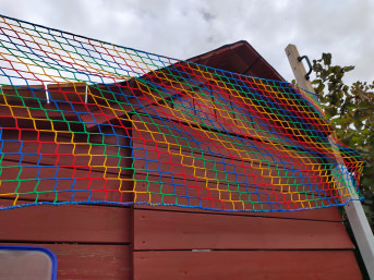 We use the net to secure the terrace. It is beautifully colored and cleanly made. It is easy to stretch and is very robust and weatherproof! Later it will serve as a barrier for the driveway.