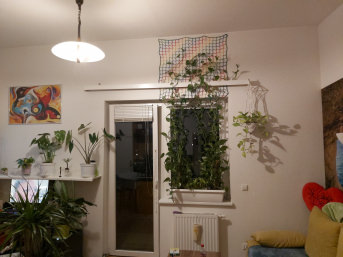 We liked the colorful net, so we installed it as a stair barrier - as an alternative to the fixed barriers. One side is fixed, the other is simply attached with a snap hook, which stops dogs and children from running up or down the stairs.