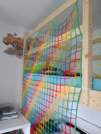 The nets fit very well and protect our children from falling from the self-built second level of the loft bed. Waiting for the delivery time was definitely worth it. translated, original text: "Die Netze passt sehr gut und schützen unsere Kinder vor Absturz aus der selbstgebauten 2. Etage des Hochbettes. Das Abwarten der Lieferzeit hat sich definitiv gelohnt."