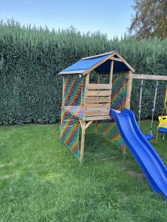 Wir haben das Netz seit einigen Wochen im Einsatz und sind überaus zufrieden damit. Die Qualität und Verarbeitung sind top. Wir haben uns für die bunte Variante entschieden, damit es sich vom Holz etwas abhebt.