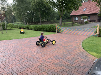 We ordered the safety net because our children like to drive their vehicles around the yard. We live on a busy road and we want to use the net to protect our children and also to draw attention to the fact that children are playing here. translated, original text: "Wir haben das Schutznetz bestellt, da unsere Kinder gerne auf dem Hof mit ihren Fahrzeugen fahren. Wir wohnen an einer viel befahrenen Straße und möchten mit dem Netz einerseits unsere Kinder schützen und zudem darauf aufmerksam machen, das hier Kinder spielen."