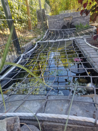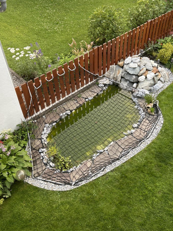 The net is intended to serve as a pond protection net to protect our grandchildren. So far, however, I have not installed it. This will happen in the near future. translated, original text: "Das Netz soll als Teichschutznetz dienen, um unsere Enkel zu schützen. Bisher habe ich es jedoch noch nicht verbaut. In naher Zukunft soll dieses geschehen."