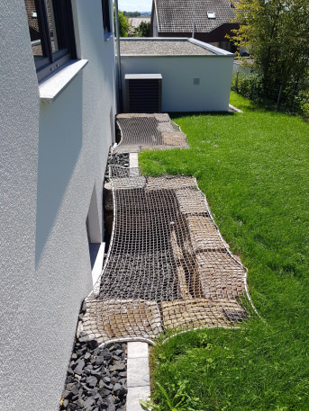 We use the net as a cover for our light shaft. Now our little son can play in the garden by himself.