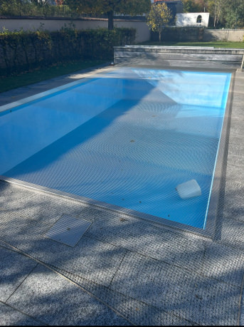 Cover was installed. Good quality, installation was easy. 5 stars for that translated, original text: "Nutzung zur Teichabdeckung ( Laubschutz)