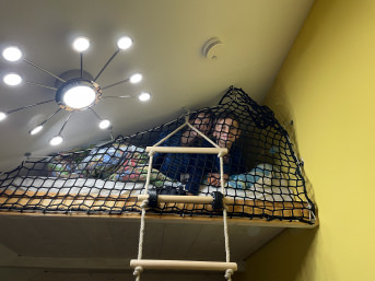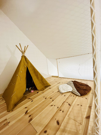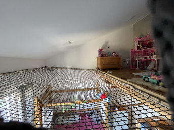We built the net as a safety net and play net next to my daughter's gallery. That means her room is on two floors and we secured the open area with the net. My daughter loves to lie on the net and play.
