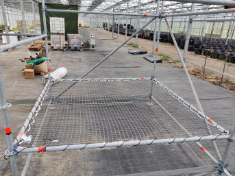The aim was to develop a structure to store liquid on a scaffolding. The collection net has proven to be the ideal solution as it is easy to assemble and handle and robust in its function. Due to its UV resistance and resistance to high and low temperatures, we will also use it outdoors. translated, original text: "Ziel war es eine Konstruktion zu entwickeln um Flüssigkeit auf einem Gerüstbau zu lagern. Das Auffangnetz hat sich als Ideale Lösung hervorgetan, da eine einfach in der Montage und handling und Robust in seiner Funktion. Durch seine UV-Beständigkeit und Resistenz bei höheren und niederen Temperatur werden wir dieses auch im Außenbereich einsetzten."